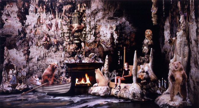 | "The Whispering Cave" from "The Dollhouse" series, 2002 collage on photograph 33 x 60 inches |