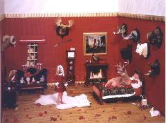 | "The Trophy Room" from "The Dollhouse" series, 2002 collage on photograph 35 x 47 inches |